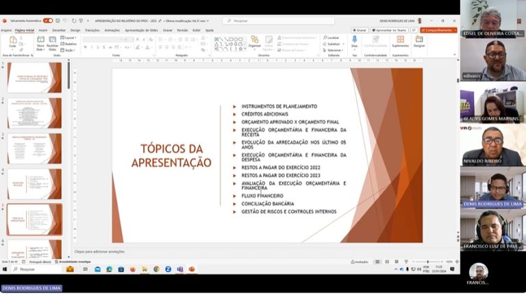 O relatório de prestação de contas foi apresentado em detalhes pelo coordenador de Contabilidade e Finanças do Ministério Público do Piauí, Denis Rodrigues de Lima. Os presentes se manifestaram pela regularidade e transparência da execução orçamentária, financeira e patrimonial do FPDC no exercício de 2023, ressaltando inexistir qualquer falha capaz de resultar em danos ao erário ou imposição de multa pelos órgãos de controle, em consonância, inclusive, com análises mensais da execução por parte da Coordenadoria Interna.