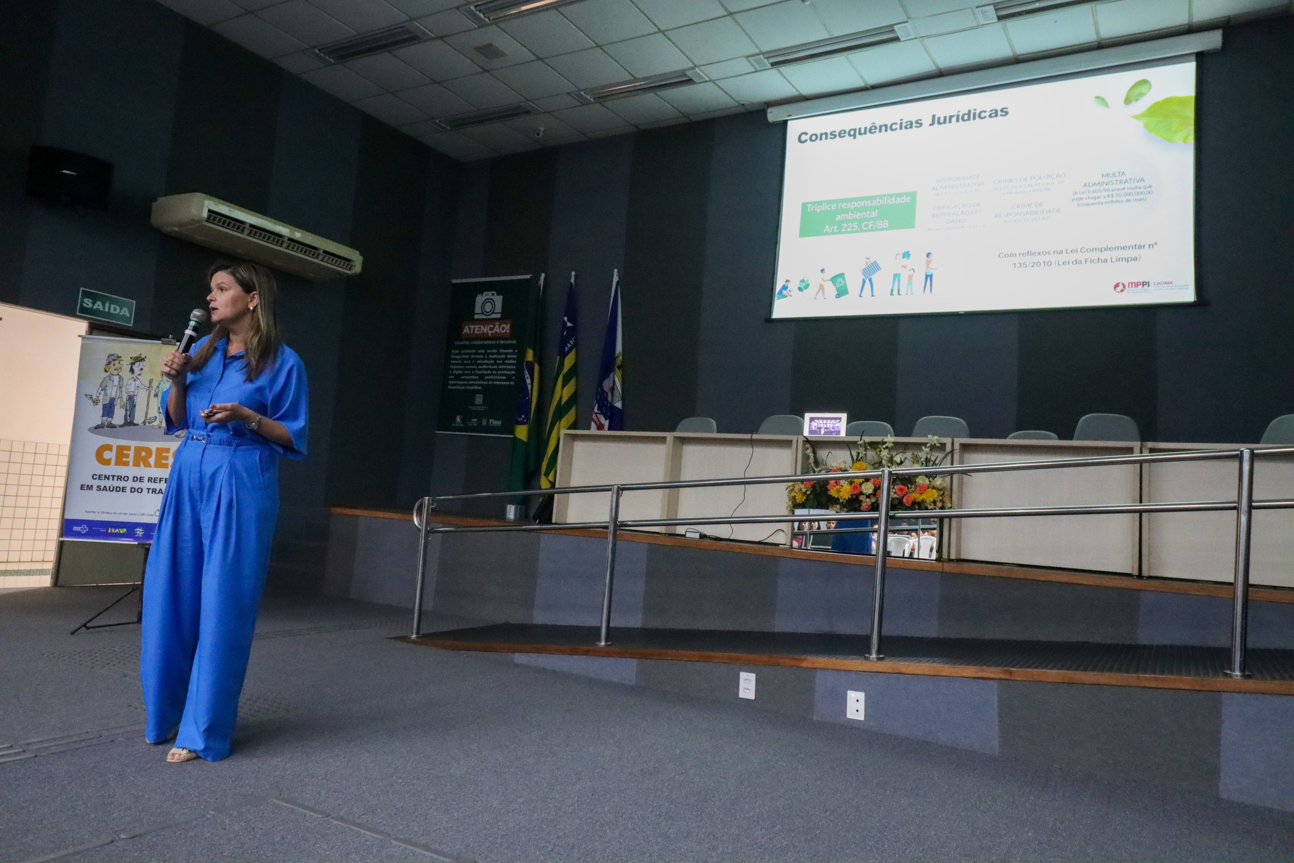 Na ocasião, a promotora apresentou os resultados do projeto Zero Lixões – Por um Piauí mais Limpo, desenvolvido pelo MPPI. Em seguida, abordou as responsabilidades legais atribuídas a gestores públicos e empresas em casos de má gestão e destinação inadequada de resíduos provenientes de serviços hospitalares.