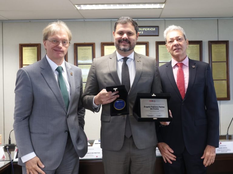 Durante o encontro, Fernando Ferro e João Paulo Santiago entregaram a Medalha do Mérito Correcional 2025 ao Corregedor Nacional do Ministério Público, Ângelo Fabiano Farias da Costa, em reconhecimento ao trabalho desenvolvido, ao apoio prestado e aos relevantes serviços em prol do fortalecimento das atividades institucionais e da promoção da integridade e eficiência do Ministério Público do Piauí.