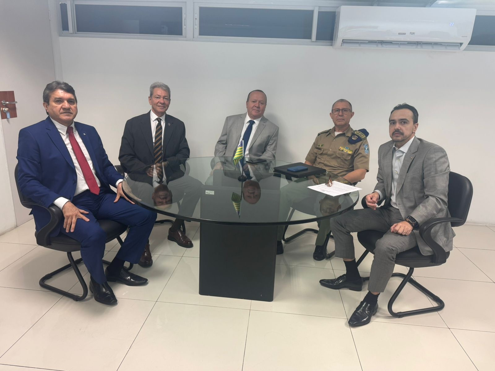O Corregedor-Geral do Ministério Público do Estado do Piauí (MPPI), Fernando Melo Ferro Gomes, recebeu nesta segunda-feira (17), o Juiz da Vara Militar, Raimundo Joé de Macau Furtado, o Corregedor-Geral da Polícia Militar do Piauí, Cel. Newmarcos Pessoa Basílio, e os promotores de Justiça Francisco de Assis Rodrigues de Santiago Júnior, coordenador do Grupo de Atuação Especial de Controle Externo da Atividade Policial (Gacep/MPPI), e Assuero Stevenson Pereira Oliveira, titular da 9ª Promotoria de Justiça de Teresina.