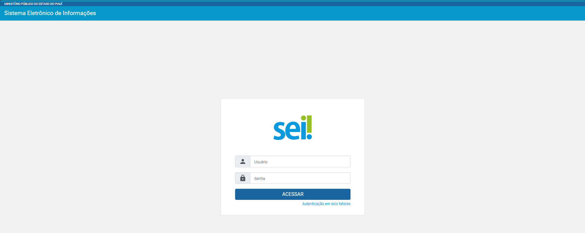 Acesse o sistema SEI com seu login e senha por meio do link: SEI / MPPI.