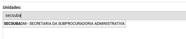 Selecione a unidade “SECSUBADM – Secretaria da Subprocuradoria Administrativa” e clique em “Enviar”.