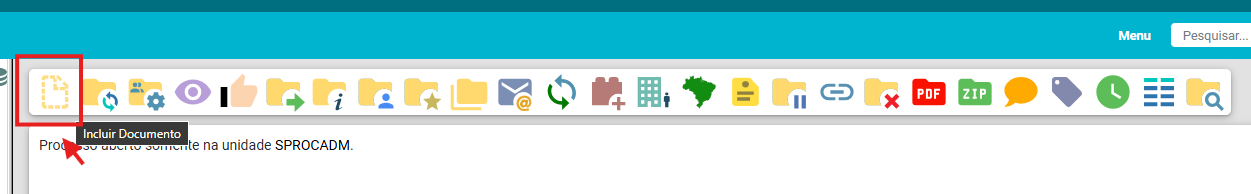 Iniciado o processo, clique no ícone de incluir documento.